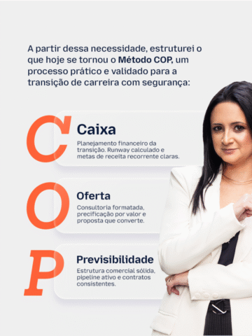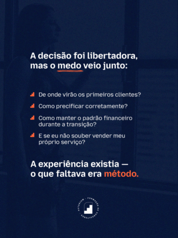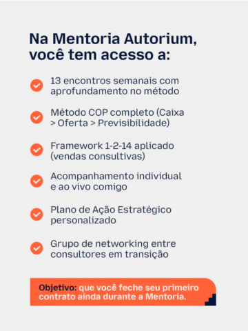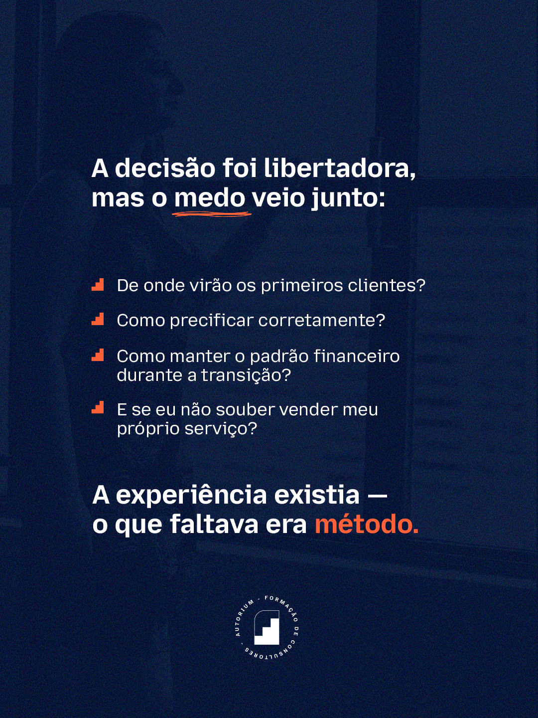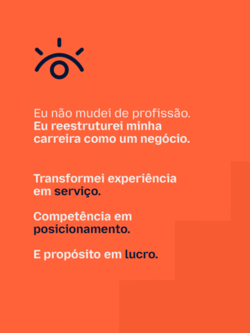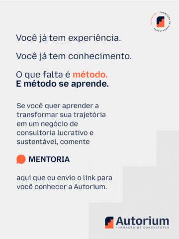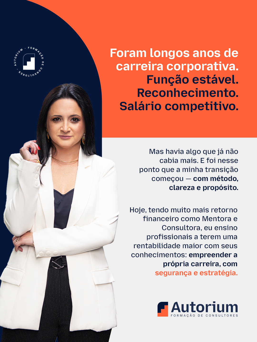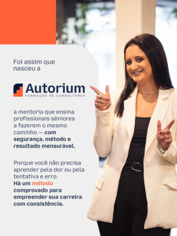 Na Autorium, conduzo profissionais sêniores no processo de empreender a própria carreira com segurança e método.